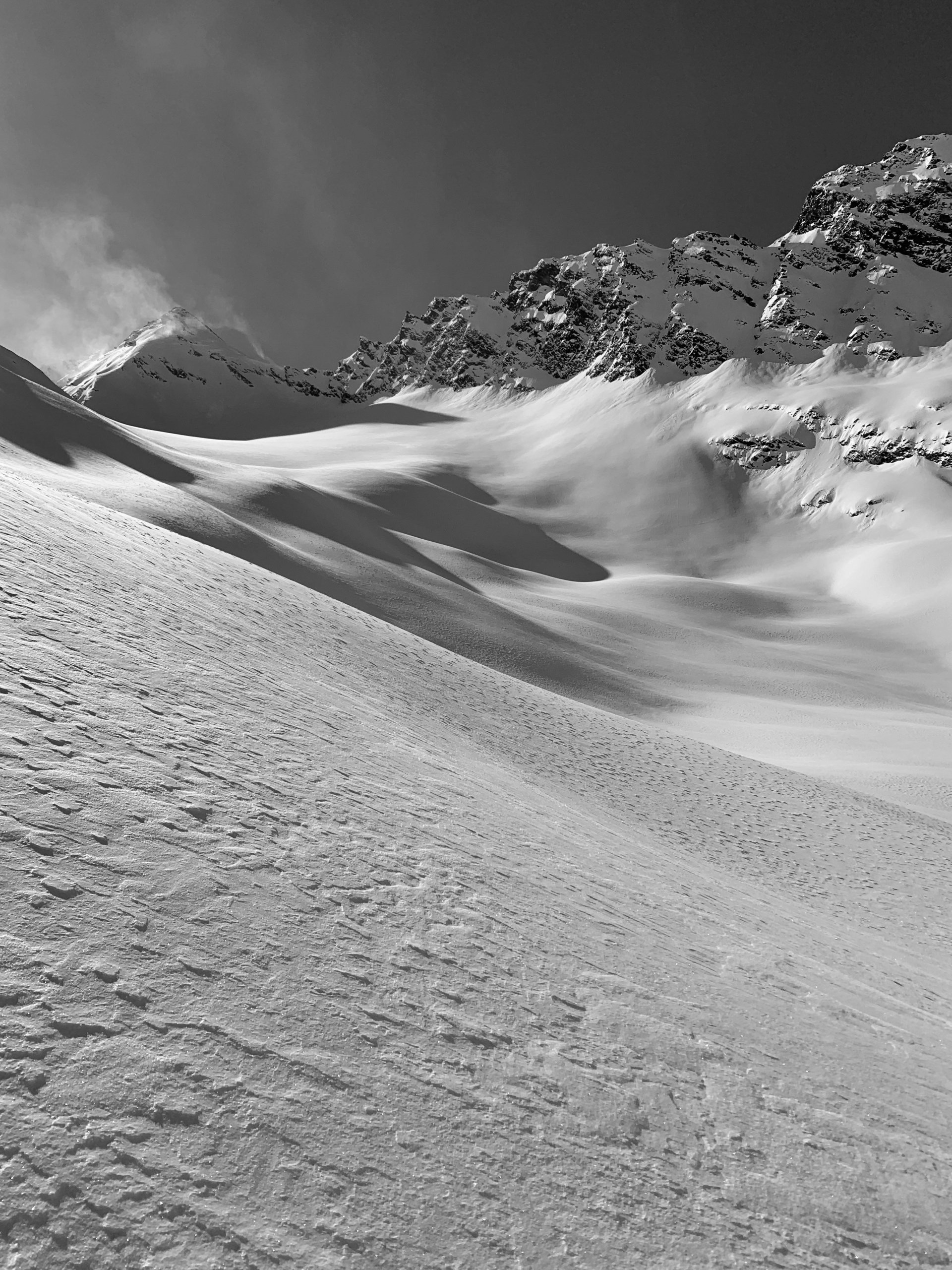 Technik: Beherrschen der Spitzkehren im Aufstieg, Parallelschwung auf allen Pisten (blau, rot und schwarz) und sichere Abfahrtstechniken in allen Schneearten sind unbedingt erforderlich. Der Umgang mit der Sicherheitsausrüstung (LVS-Gerät, Sonde und Schaufel) ist von Vorteil.